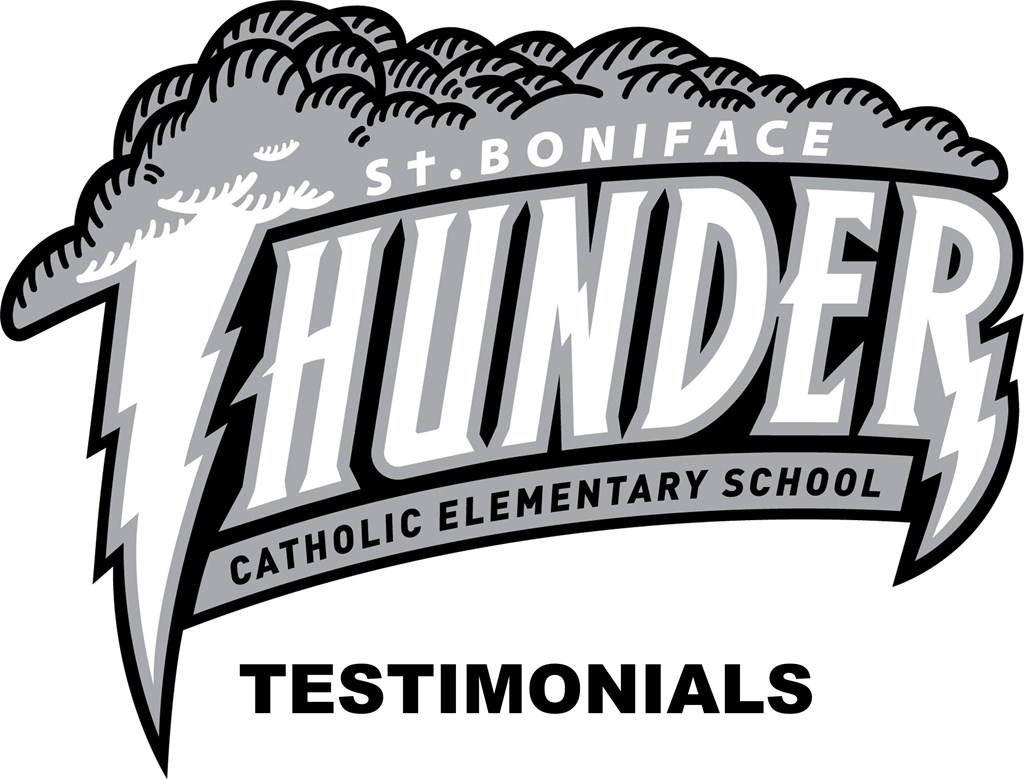 Bobbi and Geoff (Parents) – We were students ourselves at St. Boniface and our children have followed the same path. St. Boniface has embraced our children with open arms, providing opportunities for a wide range of learning opportunities, as well as assisting in the development of the whole child – mind, body, and spirit. We are very thankful for the welcoming and caring environment that St. Boniface has provided for our children. P.S. No other school has the Thunder Moms!